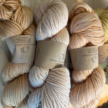 If you are ordering more than 4 skeins, or a sweater quantity, I will dye up a batch just for you to ensure colors are as close as possible. Eligible colors will be indicated as such. Sadly, foraged color dyestuff availability may impact the larger quantities of some colors. Don't blame me, complain to Mother Nature =)